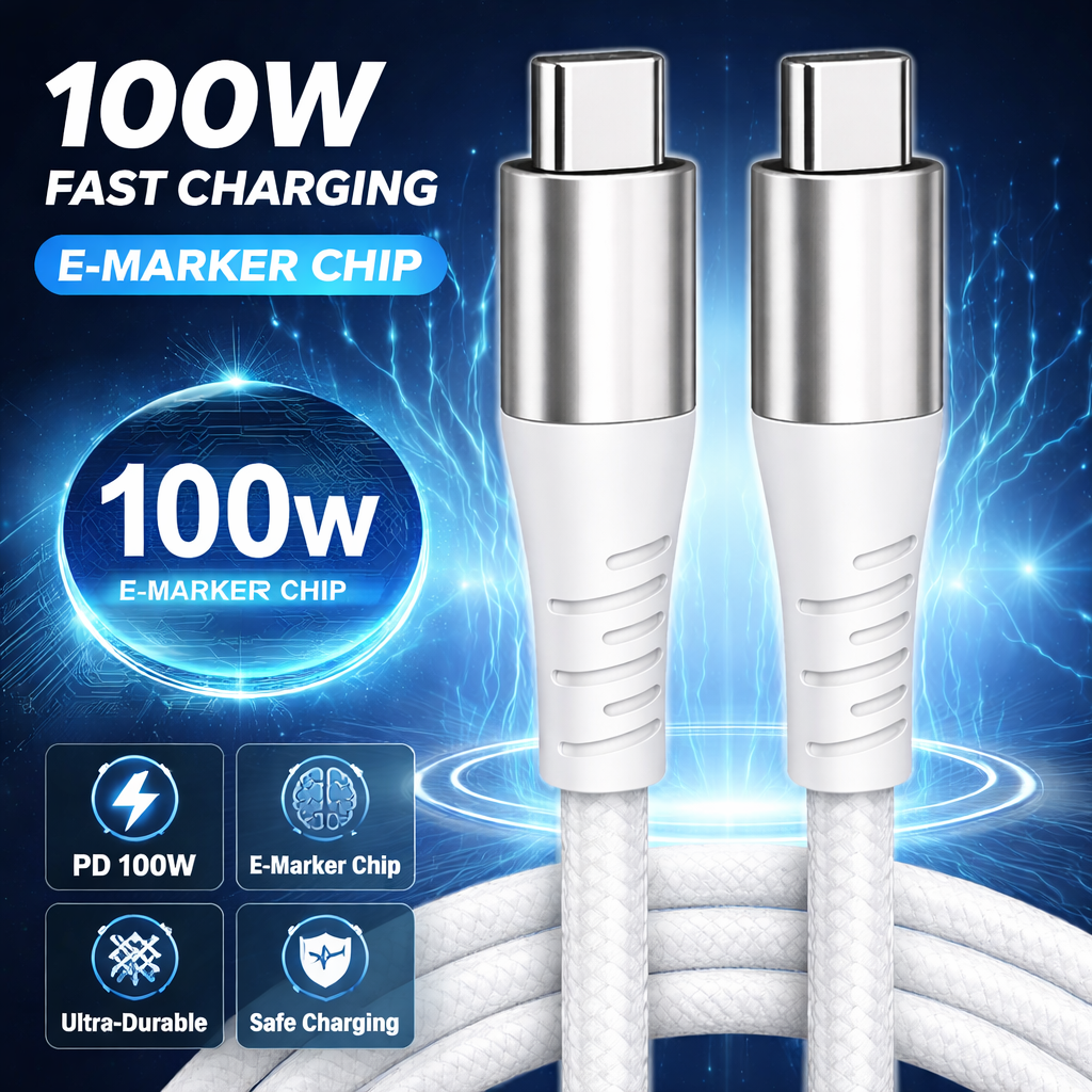 Experience next-level charging with the 100W Type C to Type C Fast Charging Cable, engineered for maximum speed, advanced safety, and heavy-duty durability. Built to deliver true 100W (20V/5A) Power Delivery, this cable is powerful enough to charge high-performance laptops, flagship smartphones, tablets, and gaming devices with unmatched stability.