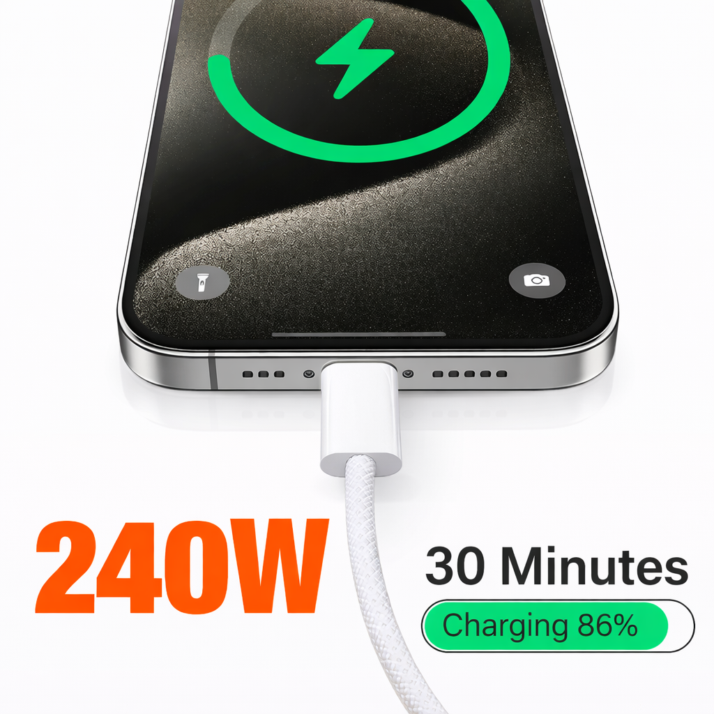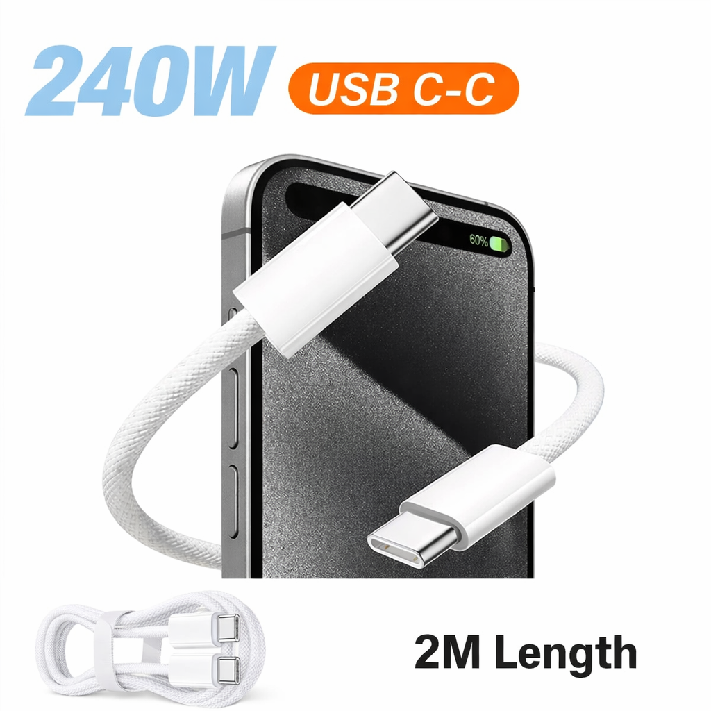 The 240W Braided USB-C to USB-C Cable is engineered for ultra-fast charging and stable high-speed data transfer for advanced USB-C devices. Built with a premium nylon braided exterior, this cable ensures superior durability, flexibility, and long-lasting performance for heavy daily usage.