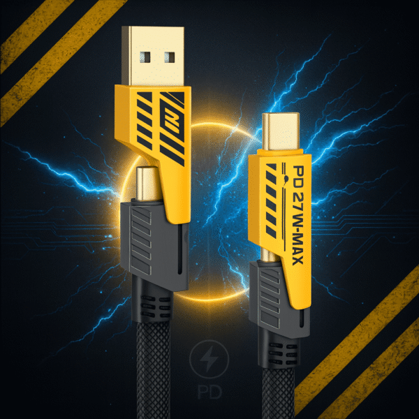 4-in-1 Fast Charging Cable – 65W PD | 27W QC | Mecha Design