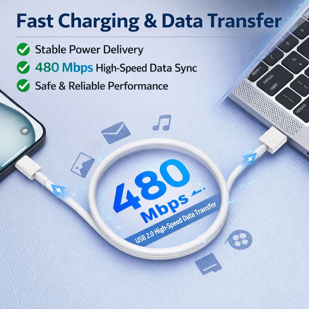 Get ready to experience a faster and more convenient way to power up your devices. The 1m / 3ft USB-C Fast Charging cable integrates advanced charging protocols to deliver lightning-fast energy transfer. Crafted to provide stable current and voltage, it ensures your devices charge efficiently without overheating or overloading. Ideal for people on-the-go, you can trust this cable for quick top-ups, saving you valuable time while keeping your devices ready for action.