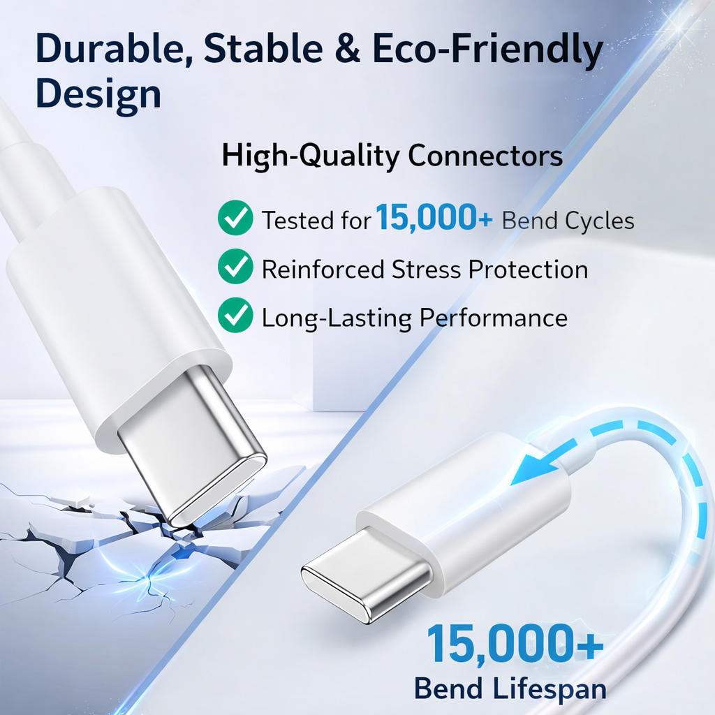 Durability meets practicality with the Fully Compatible USB-C Fast Charging cable. Designed with high-quality materials, this cable boasts resilience against wear and tear from daily use. Its 1m / 3ft length strikes the perfect balance – long enough for versatility, yet compact enough for easy storage and travel. Whether you’re plugging in at your workstation, bedside table, or car, this cable is built to accompany you everywhere while lasting the test of time.